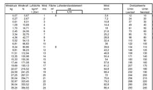 Winddruck, der bei einer bestimmten Geschwindigkeit auf den Rotor wirkt