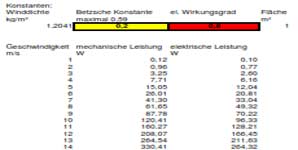 Berechnung der mechanischen und elektrischen Leistung eines Windrades
